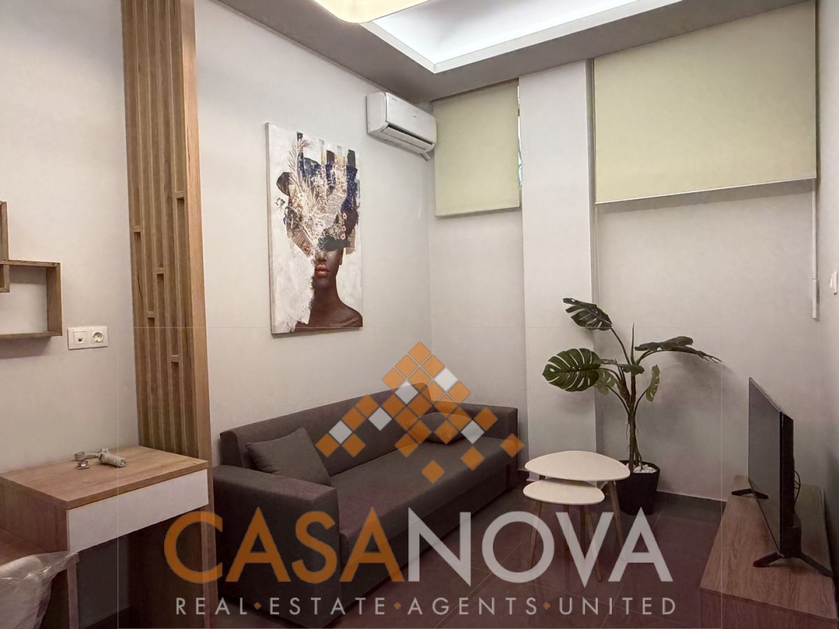 ΧΑΡΙΛΑΟΥ ενοικιάζεται πολυτελώς ανακαινισμένη ημιυπόγεια γκαρσονιέρα εμβαδου 38τμ. Αποτελείται από ένα υπνοδωμάτιο, σαλοκουζίνα και μπάνιο. Διαθέτει κλιματιστικό inverter για ψύξη - θέρμανση, θωρακισμένη πόρτα, συνθετικά ενεργειακά κουφώματα, πλήρη επίπλωση (κρεβάτι, γραφείο, καναπέ, ντουλάπα) και ηλεκτρικές συσκεύες (ηλ. κουζίνα, ψυγείο, πλυντήριο ρούχων).. Επίσης υπάρχει γυμναστήριο σε κοινόχρηστο χώρο, για δωρεάν χρήση απο τους ενοίκους. Βρίσκεται σε ασφαλή και ήσυχη περιοχή με εύκολη πρόσβαση σε αστικές συγκοινωνίες, σούπερ μάρκετ και εμπορικά καταστήματα.