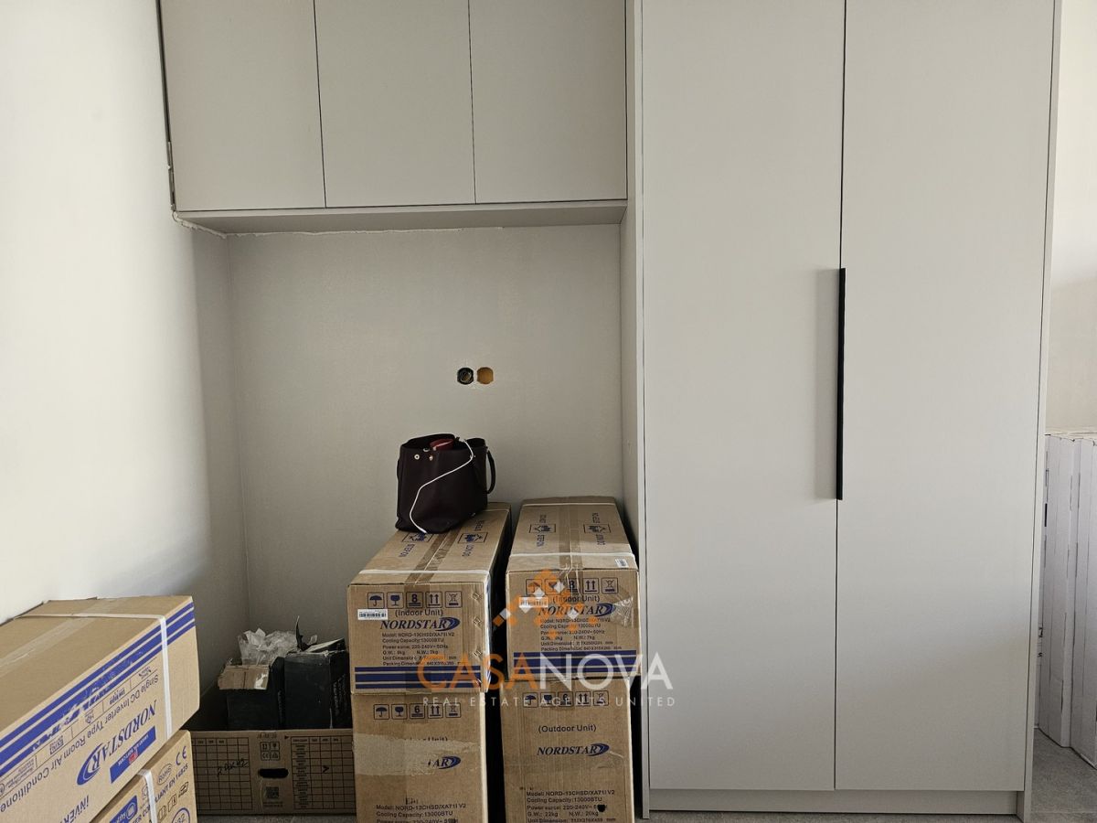 Επιπλέον, διατίθεται πλήρως επιπλωμένο και εξοπλισμένο με 2φυλλη ντουλάπα, γραφείο, τηλεόραση, εντοιχισμένο ψυγειοκαταψύκτη, πλυντήριο ρούχων, κεραμική εστία, εντοιχισμένο φούρνο, a/c 12.000btu, φωτιστικά κ.α.