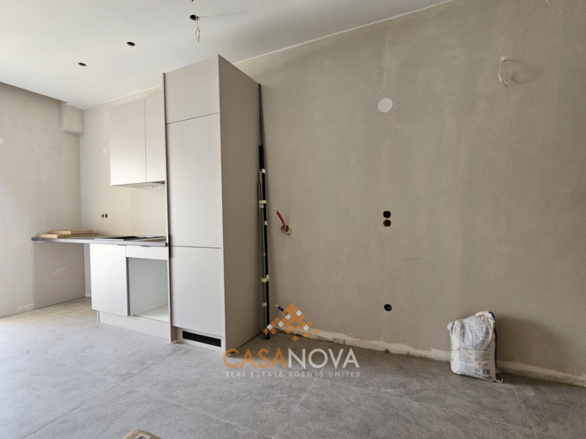 Αποτελείται από έναν ενιαίο χώρο με εξοπλισμένη κουζίνα, εντοιχισμένη 3φυλλη ντουλάπα, μεγάλο λουτρό, φαρδιά βεράντα πρόσοψης με θέα και ανοιχτωσιά.