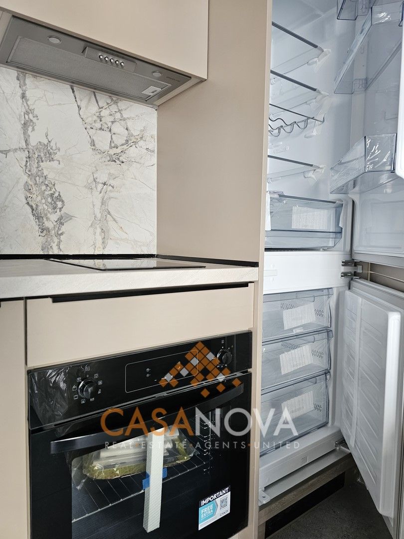 Επίσης, παραδίδεται πλήρως επιπλωμένη & εξοπλισμένη με επώνυμες ηλεκτρικές συσκευές (κεραμική εστία, εντοιχισμένο φούρνο, πλυντήριο ρούχων, κλιματιστικό) και επίπλωση (διθέσιο καναπέ-κρεβάτι, διπλό κρεβάτι με στρώμα, 2φυλλη και τρίφυλλη ντουλάπα, τραπεζάκι καφέ, τηλεόραση κ.α.