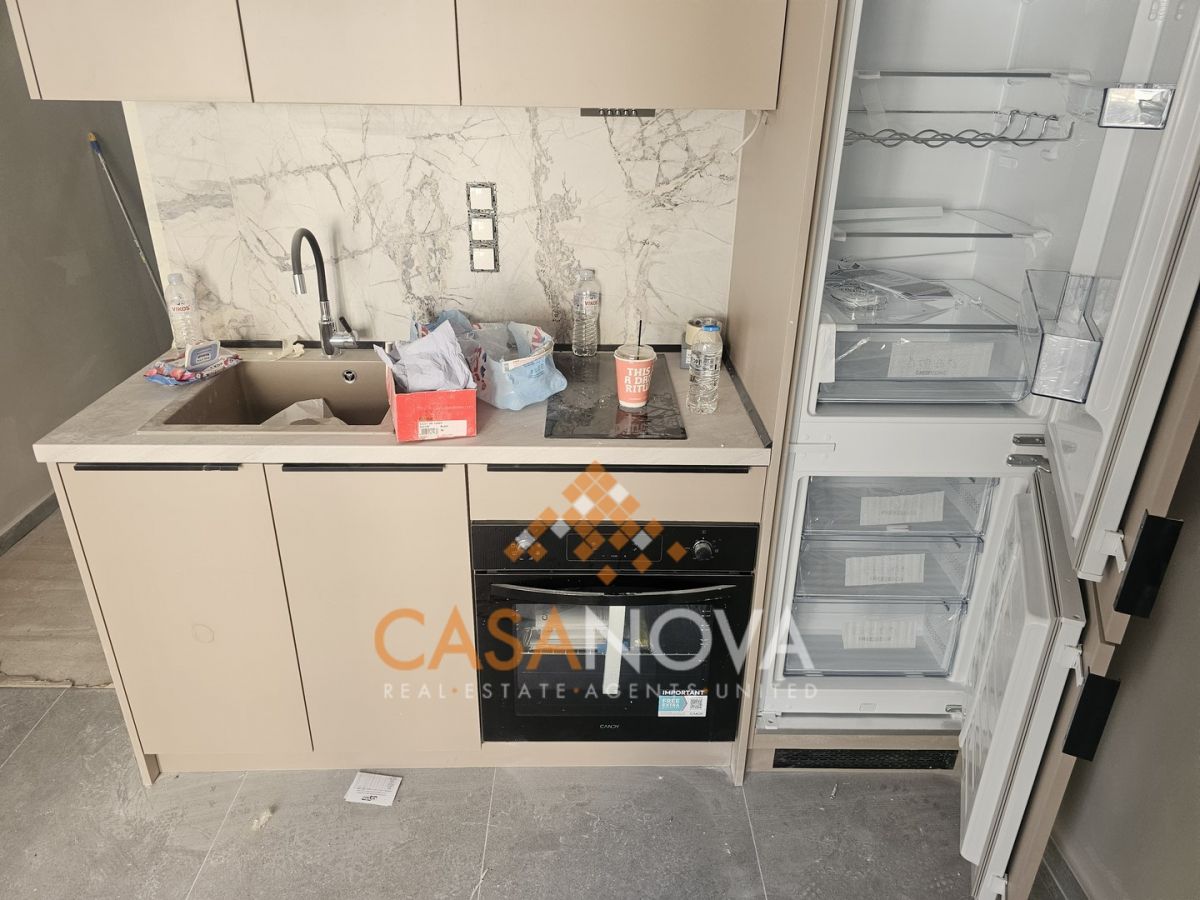 Επίσης, παραδίδεται εξοπλισμένο με επώνυμες ηλεκτρικές συσκευές (κεραμική εστία, εντοιχισμένο φούρνο, πλυντήριο ρούχων, κλιματιστικό).